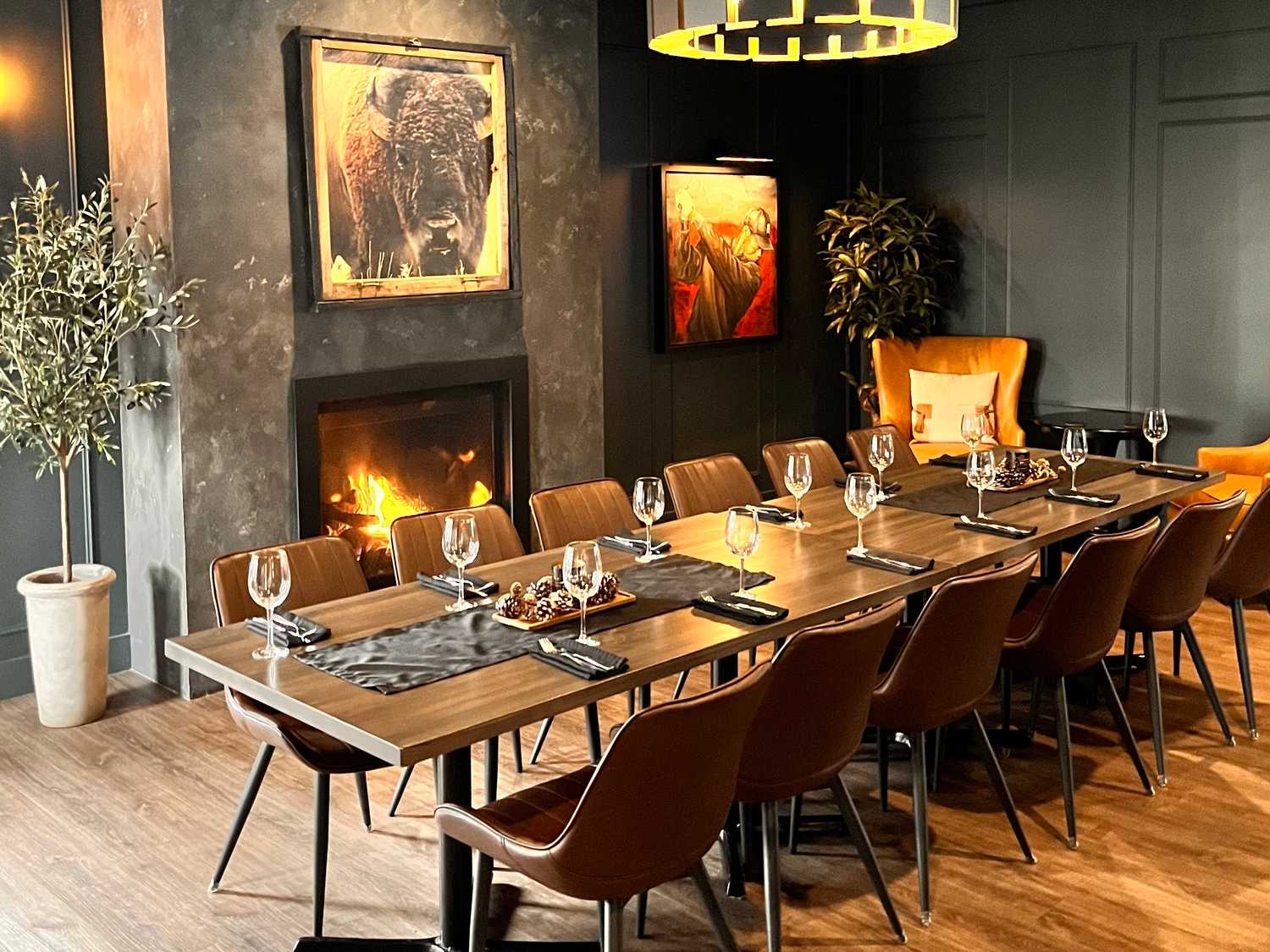 The Buffalo Room at 525 Restaurant & Patio is the perfect setting for a semi-private dining experience, ideally suited for groups of 12-24 guests. Whether you're hosting a corporate meeting, a family gathering, or simply looking for an intimate dining space away from the main dining room, the Buffalo Room offers a warm and inviting atmosphere. Enjoy the flexibility of customizing your menu to suit your guests' tastes, ensuring a personalized and memorable experience. Let us take care of the details while you relax and enjoy great food, drinks, and company in this exclusive space. Contact the Restaurant to book the Buffalo Room experience!
